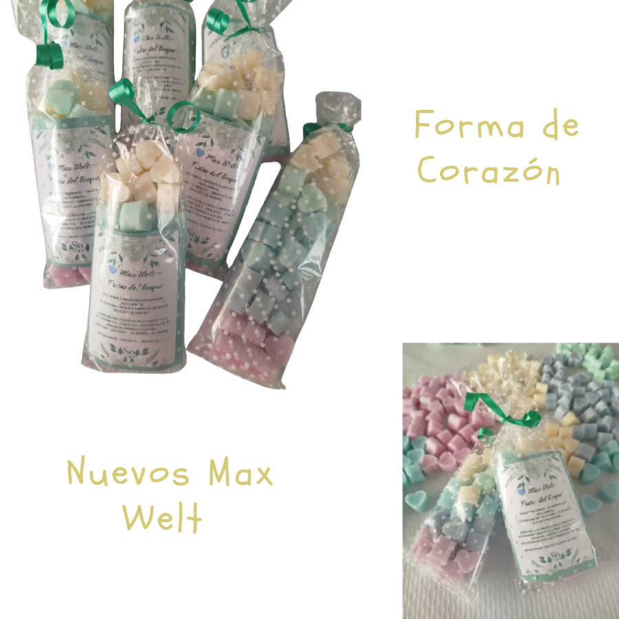 Los Max Welt son piezas de cera de soja natural aromática, elaboradas artesanalmente en diferentes formas y colores. Al derretirse desprenden un agradable aroma que envuelve tu espacio, creando un ambiente cálido y acogedor.