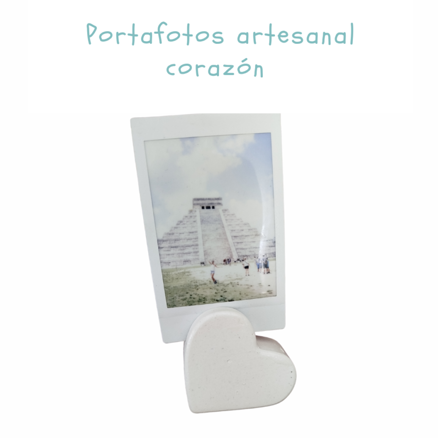 Un detalle lleno de cariño para guardar lo que más quieres. Con forma de corazón y elaborado artesanalmente en yeso, este portafotos es ideal para decorar con ternura y sencillez tus rincones favoritos.