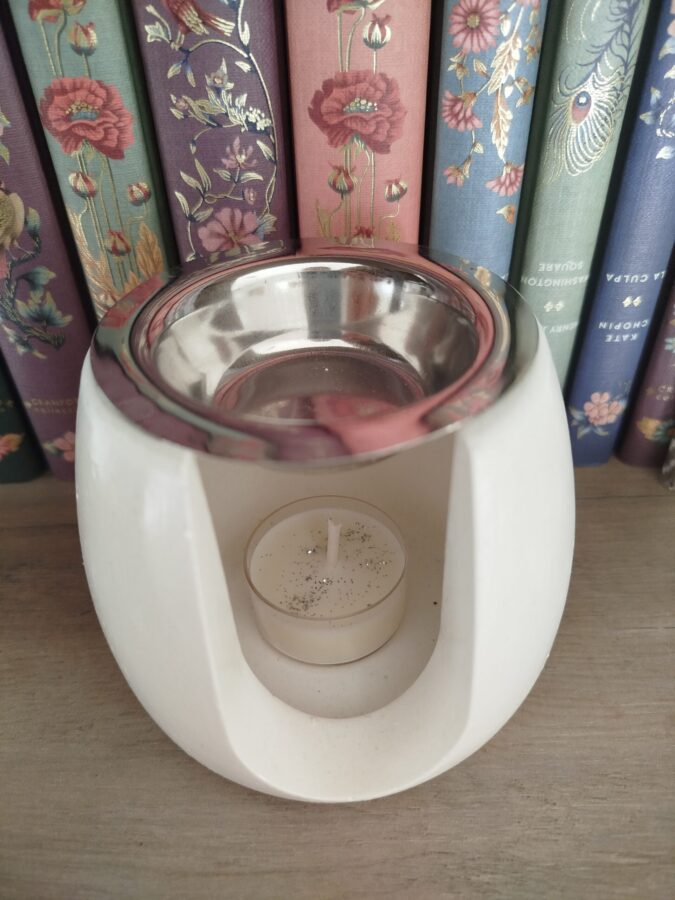 Enciende la vela de soja, colócala en la parte inferior, añade tu Max Welt favorito en el plato metálico y deja que el aroma envuelva tu espacio.