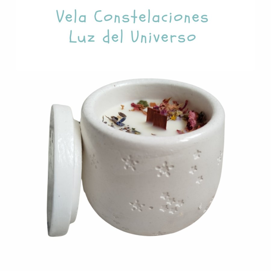 Esta vela pertenece a la colección Universo, un espacio dedicado a piezas que conectan lo terrenal con lo espiritual, invitándote a descubrir símbolos y aromas que inspiran paz, energía y equilibrio.